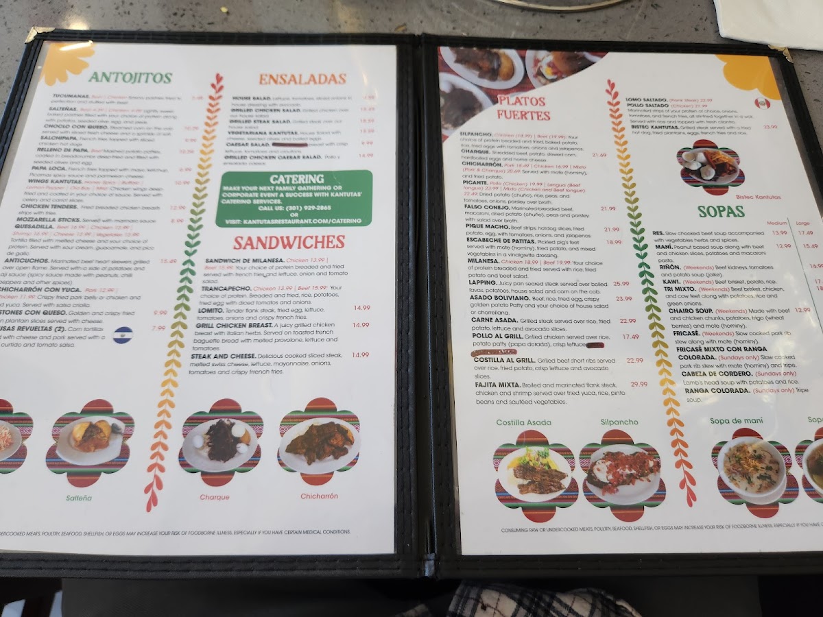 Kantuta's Restaurant Bar and Grill offers a menu that blends authentic Bolivian and Latin American flavors with a welcoming, casual dining experience. The menu is approachable and varied, featuring comforting dishes that satisfy both hearty appetites and lighter cravings. You’ll find a mix of traditional recipes like Saltenas and Silpancho alongside more familiar options such as steak and salads, making it an inviting spot for both adventurous diners and those discovering Bolivian cuisine for the first time.